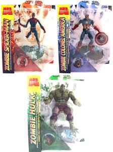 Marvel Zombies ZOMBIE Colonel Captain America, Incredible Hulk, Spider-man 3 Figure Set